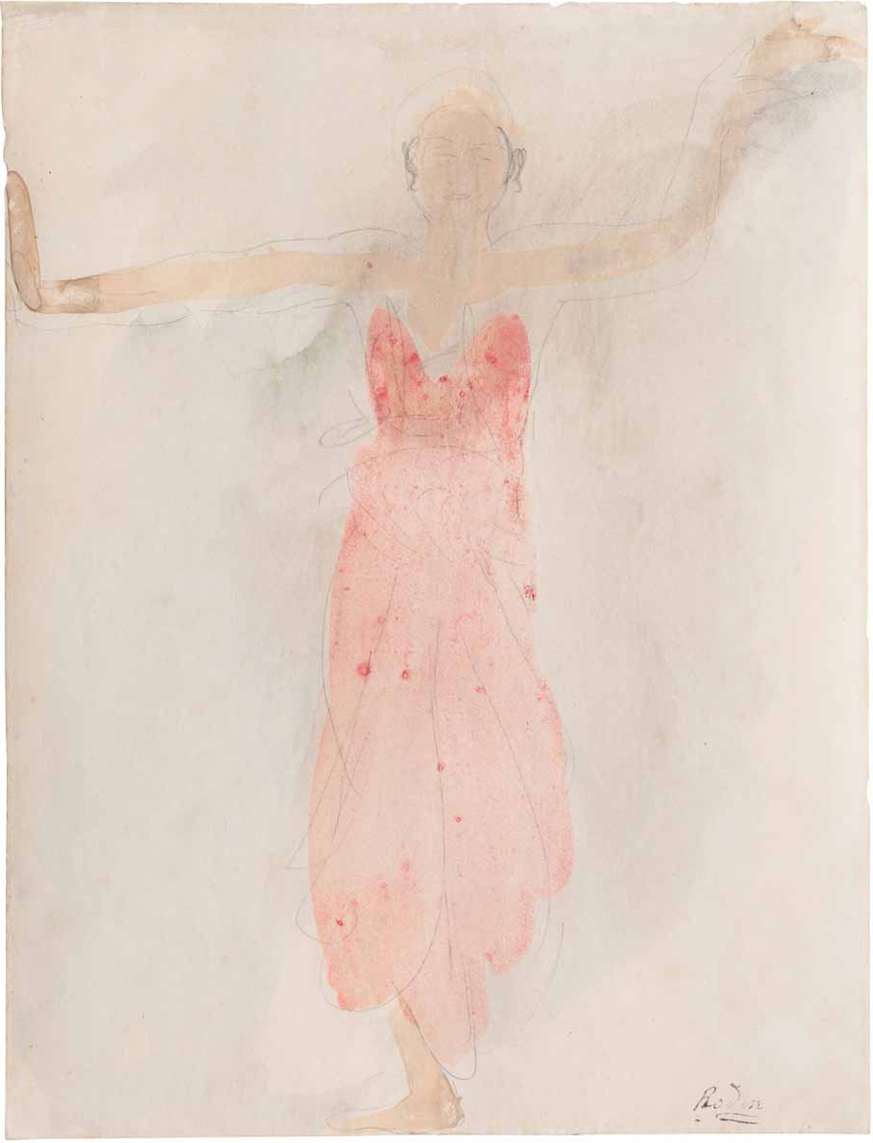 While sculpture, which had brought him fame in France and internationally, remained his primary medium, it was in his drawings that Rodin explored his newfound obsession with the dancers, whom he followed to Marseille, where they pursued their French tour. The intimacy of the connection he formed with the Cambodian performers was deeply personal, and he sought to capture their essence in a way that went beyond mere representation. The encounter with the dancers marked a pivotal moment in Rodinʼs career, inspiring some of his most original final works.
